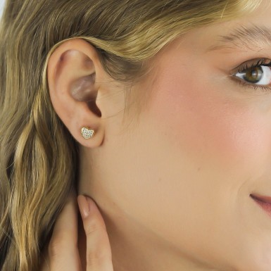 Nosso brinco coração Cora é banhado a ouro 18k e cravejado com zircônias.