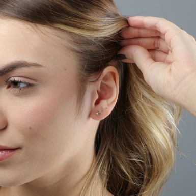 Nosso brinco estrela Bianca liso é banhado a ouro 18k.