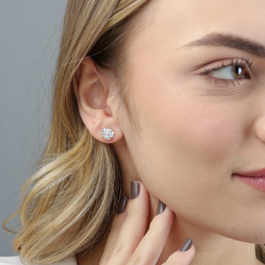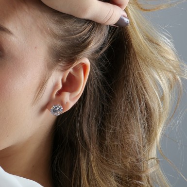 Fabricado com materiais de alta qualidade, o brinco possui uma pedra de zircônia cúbica brilhante, montada em uma base de metal banhada a ouro